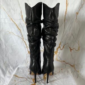 Vince Camuto Armonda black crocodile-embossed leather slouchy boots