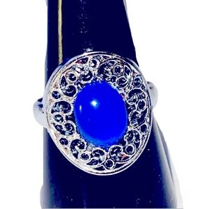 New Handmade Native Sterling Silver Bohemian Natural Dyed Blue Agate Ring