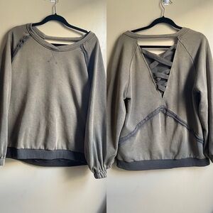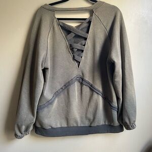 POL Grunge distressed green lace up back crew neck synched sleeves oversized M