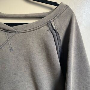 Distressed raw hem crew neck