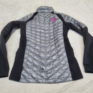 The North Face Gray Quilted Pink Black Thermoball Jacket Women M Cozy Casual