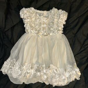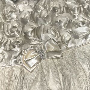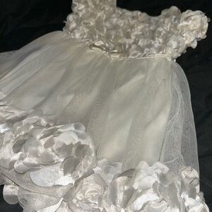Elegant white dress with floral accents. Perfect for formal occasions. Features a delicate tulle skirt.