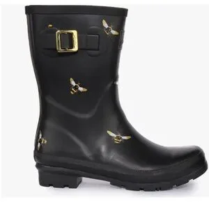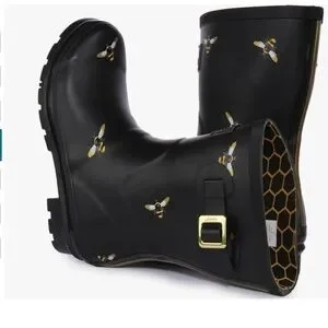 NWT Joules waterproof Molly Welly black metallic bumble bees mid-calf adjustable wellies rain boots with honeycomb design interior