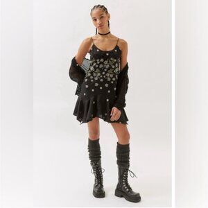 Urban Outfitters | Sienna Asymmetrical Embroidered Mini Dress Black New Medium