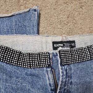Chic denim jeans with a striking black studded waistband. Ideal for everyday style. Size 9/10