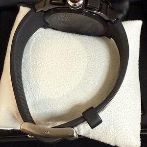 Quartz Black Unidirectional Rotating Bezel, Scratch Resistant Sapphire Crystal, PVD Stainless Steel Case, Buckle & Black Silicone Two Piece Strap. WR to 300 meters.
