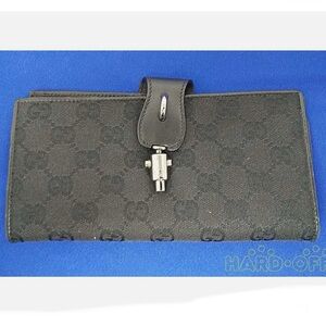 Elegant Gucci long wallet monogram canvas leather black with Features a secure clasp.