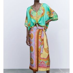 Blouse made of viscose. V-neck with lapels and short sleeves.