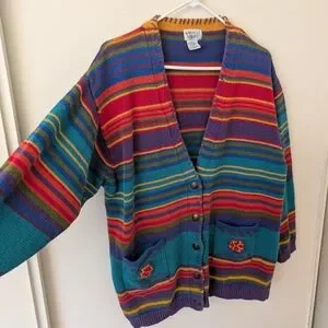 Vintage Napa Valley Womens Large Striped Cardigan Academia Eclectic Grandma