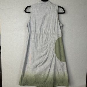 Covelo Linen Dress Grey Green Ombre Women's Sz10 Art to Wear Sun Ray Embroidered