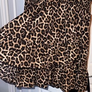 Chic animal print dress with long sleeves. Features a gathered waist and ruffled hem.