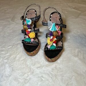 Step out in style with these vibrant platform heels featuring playful tassels. Perfect for adding a pop of color to any outfit.