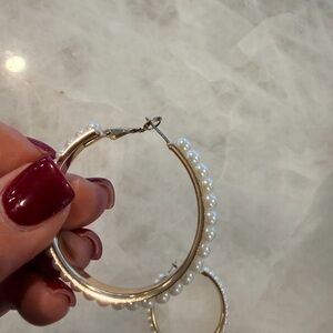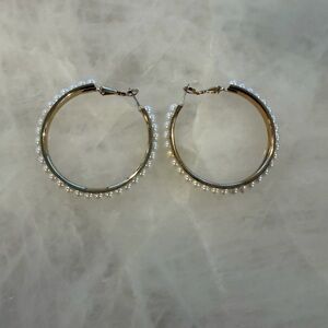 These elegant pearl hoop earrings are perfect for adding a touch of sophistication to any outfit. The classic white pearls are beautifully set to enhance your style.