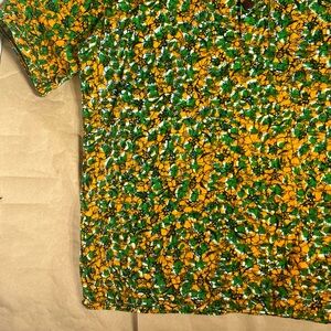 Vibrant men's shirt featuring a striking green and yellow floral pattern. Perfect for adding a pop of color to your wardrobe.