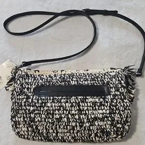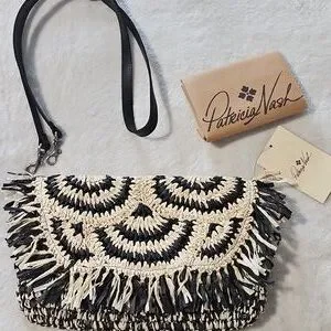 Patricia Nash Loulia Clutch/Crossbody Bag: Woven Straw Natural & Black