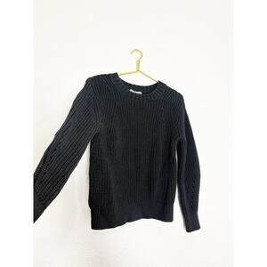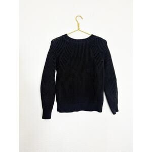 Everlane Texture Cotton Crewneck Sweater Size Small Black Fisherman Grandpa