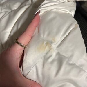 Condition: Gently used with a small stain on the left sleeve as well as near right pocket (shown in last photos)