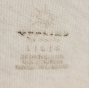 The official color is oatmeal. The model in stock pic is 5' 3" and wearing an XS. Excellent pre-owned condition overall; brand tag is faded.
