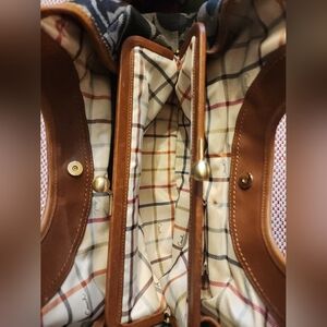 EUC vintage Y2K Coach Ergo Signature Denim Satchel with Kisslock interior. Has 3 compartments, snap hardware, zipper interior pocket, 2 open pockets, and leather trim. This bag is in really good vintage condition. The interior lining has a few small stains throughout as seen in pics, but overall is very clean. The leather has a nice patina. No rips or tears. I have a lot of Coach bags, and I've definitely received the most complinents on this one! Purchased in the early 00's.