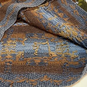 Stay cozy with this beautifully crafted knitted cardigan featuring a scenic design. The blend of blue, brown, and green colors adds a touch of nature-inspired style to your wardrobe. Perfect for casual outings or relaxing at home.