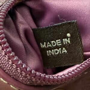 COACH F43522 Optic Pink Signature Jacquard Pleated Leather Wristlet Dusty Rose