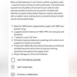 #Quince #LugSoleLoafers #ItalianLeather #BoneShoes #NeutralStyle #WorkShoes #MinimalistFashion #Loafers #Size7 #chunky