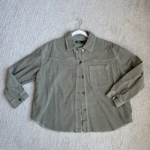 ZARA- Western Green Corduroy Shacket with Frayed Hem