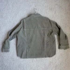 Casual olive corduroy jacket with button-up front and chest pocket. Ideal for everyday wear.