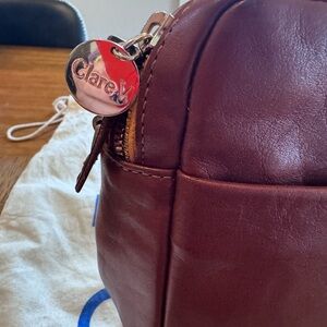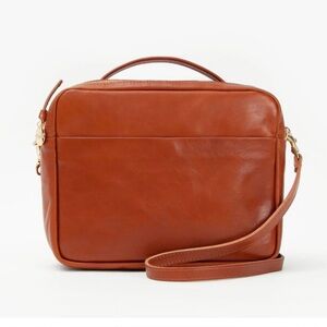 Sleek brown leather crossbody bag. Features a sturdy strap. Ideal for everyday use.