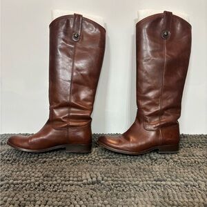 Knee high genuine leather boots by Frye. Crafted for durability.