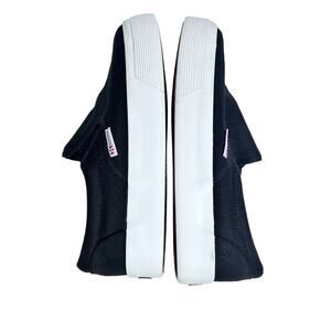 Superga Black White Womens Canvas Low Top Platform Slip On Sneaker. Canvas upper, rubber sole. Excellent pre-owned condition. Size 38/ 7.5