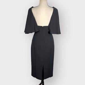 Get cocktail attire ready in the Louisa dress in Black. This sophisticated and flattering midi features a deep v-neck and an even deeper square back with a pencil skirt and butterfly sleeves.