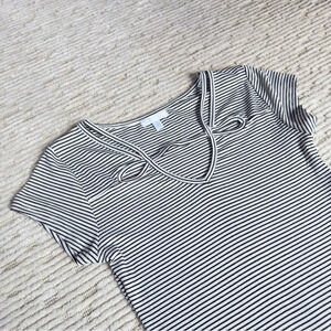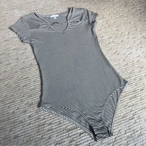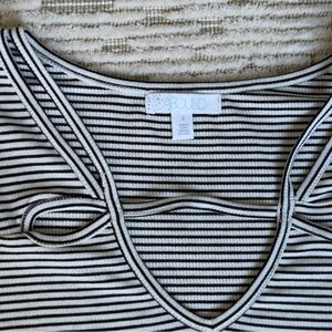 Abound Black and White Striped V-Neck Top Women's Bodysuit Small used once and in excellent condition. Stylish V-neck top with black and white stripes. Features a unique neckline design.