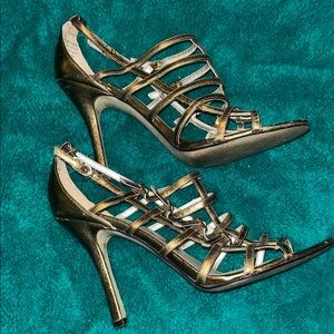 Elegant gold strappy heels. Perfect for a night out. Stylish and sophisticated.