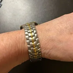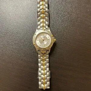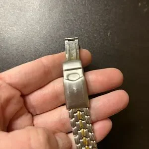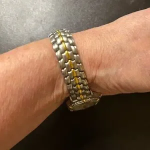 Rare Stylish Bulova watch with a sleek silver and gold design. Perfect for any occasion.