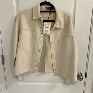 Stylish utility jacket by Zara. Features a classic design with front pockets. Ideal for layering.