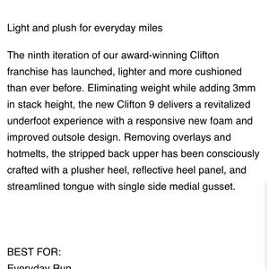 🏃♀️ The 9th generation of HOKA’s award‑winning Clifton delivers a lighter, softer, more cushioned ride with an added 3mm stack height and revitalized CMEVA foam for all‑day comfort.