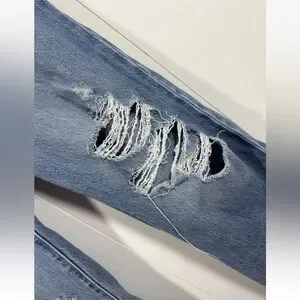 Good condition, distressed destroyed jeans with normal signs of wear.