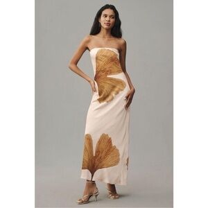 NWT! Anthropologie The Fleur Strapless Satin Maxi Slip Dress Size XL 🟤