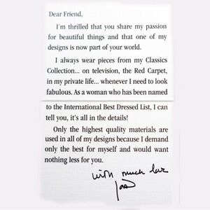 This Joan Rivers Parure (jewelry set) includes 2 stretch bracelets with gold plated bars & 'caviar', rich brown, copper and red enamel. One has clear Austrian crystals & is slightly larger than the other. They are sold with the matching cocktail ring which is a size US7 and is designed with the same features matching the bracelets perfectly and really making a statement. Perfect for fall outfits and an excellent gift for someone who loves Joan Rivers. Brand new with box, and Joan Rivers literature.