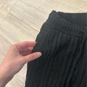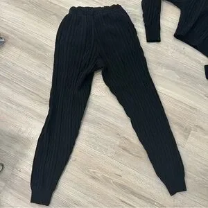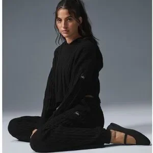 Alo black cable knit hooded sweatshirt and knit sweatpants set