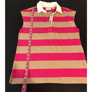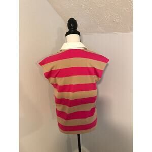 Anthropologie Maeve Women's Porter Striped Sleeveless Pink Tan Polo
