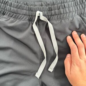 Comfortable gray scrub set featuring a V-neck top and drawstring pants. Ideal for healthcare professionals.