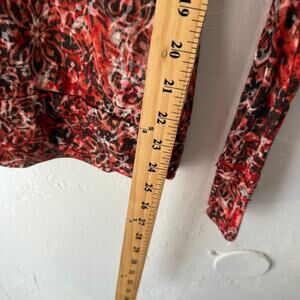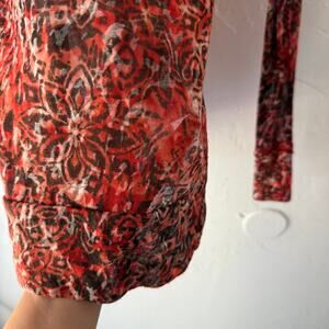 Maurices Red Sheer Abstract Print Long Sleeve Top M Y2K Stretch Fitted Burnout