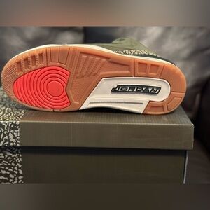 Sleek olive sneakers with tan accents. Comfortable and stylish design. Perfect for everyday wear.