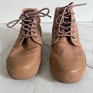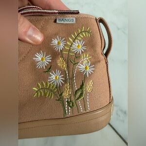 BANGS Women’s 7.5 Tan Floral Embroidery Canvas High Top Lace Up Sneakers