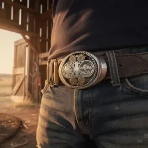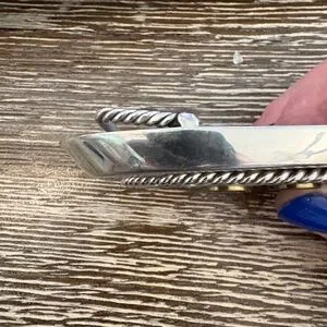 The buckle is made from a silver-toned metal with a rope-edge design.