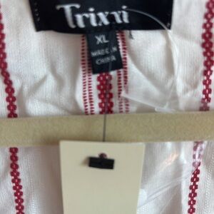 NWT Francesca Chic peplum blouse with red and white stripes. Features a V-neck and button-up front. Perfect for casual 2024 style perfect for summer vacation as it’s a lightweight top that can be dressed up or dressed down. Pair with boho chic barrel jeans styling for Spring 2025.