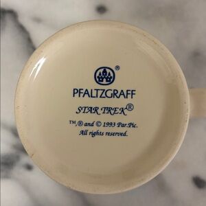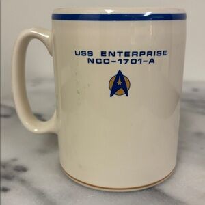 Enjoy your favorite beverage in this USS Enterprise ceramic mug. Any Star Trek fan will recognize this iconic logo! This vintage mug was made by Pfaltzgraff in 1993, and it is in excellent vintage condition. Holds 10 oz.