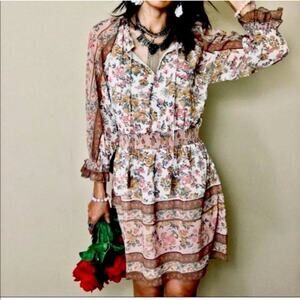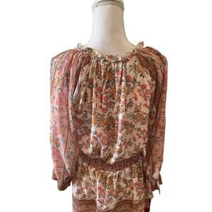 Love the Label Anthropologie Boho Floral Print sheer long sleeve dress M